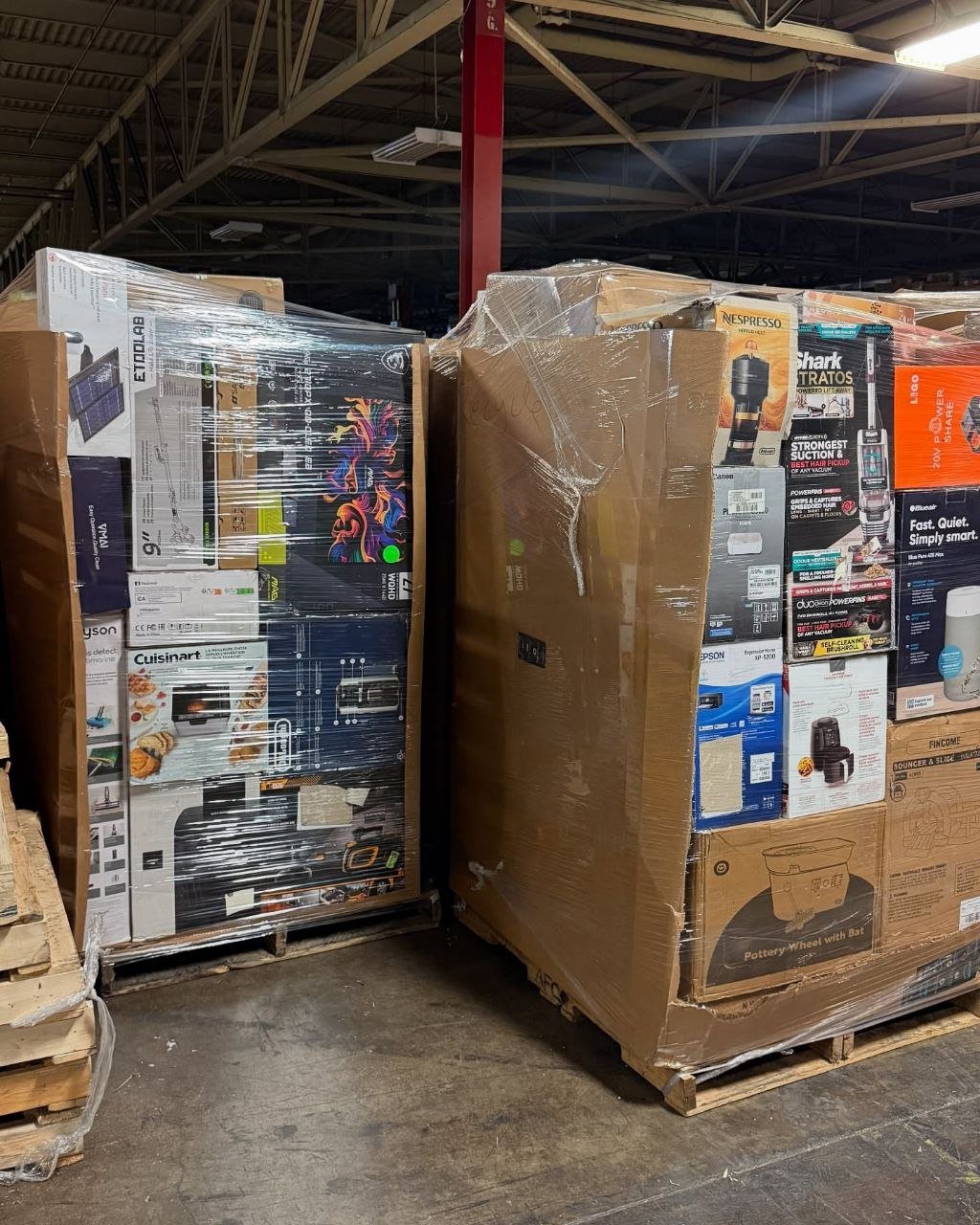 Die Paletten sind umfangreich gemischt und enthalten eine Vielzahl unterschiedlicher Elektronikprodukte.
